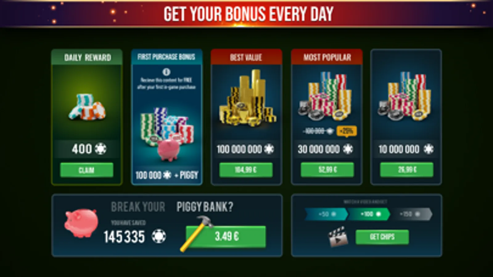 - A wide range of bonus chips.