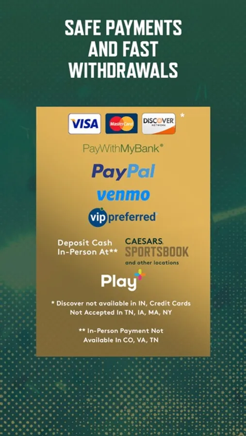 Must be 21+ and physically present in AZ, CO, IL, IN, IA, KS, KY, LA, MD, MA, MI, NV, NJ, NY, OH, PA, TN, VA, WV, WY, or Washington, DC. Sports betting is void in Georgia, Hawaii, Utah, and other states where prohibited.