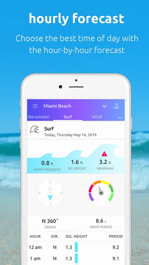 Open water forecast for marine/sailing. Includes all weather indicators and also the water temp. Hourly marine table.