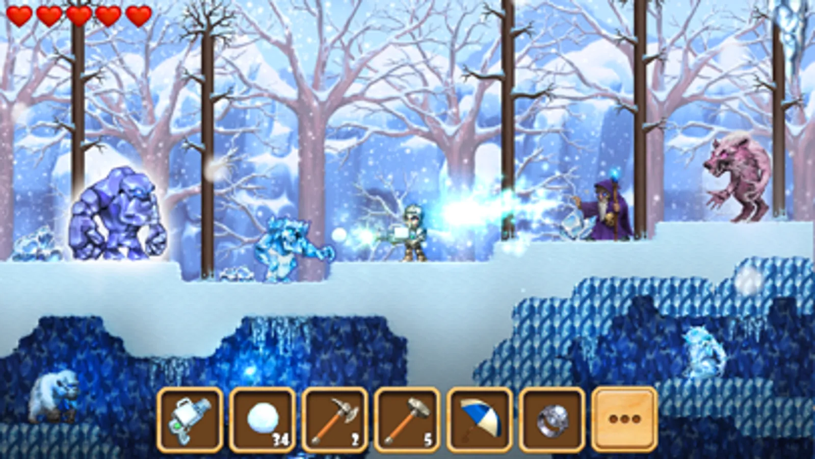 • Mine dirt, stone and items with the pickaxe. Destroy walls with hammer.