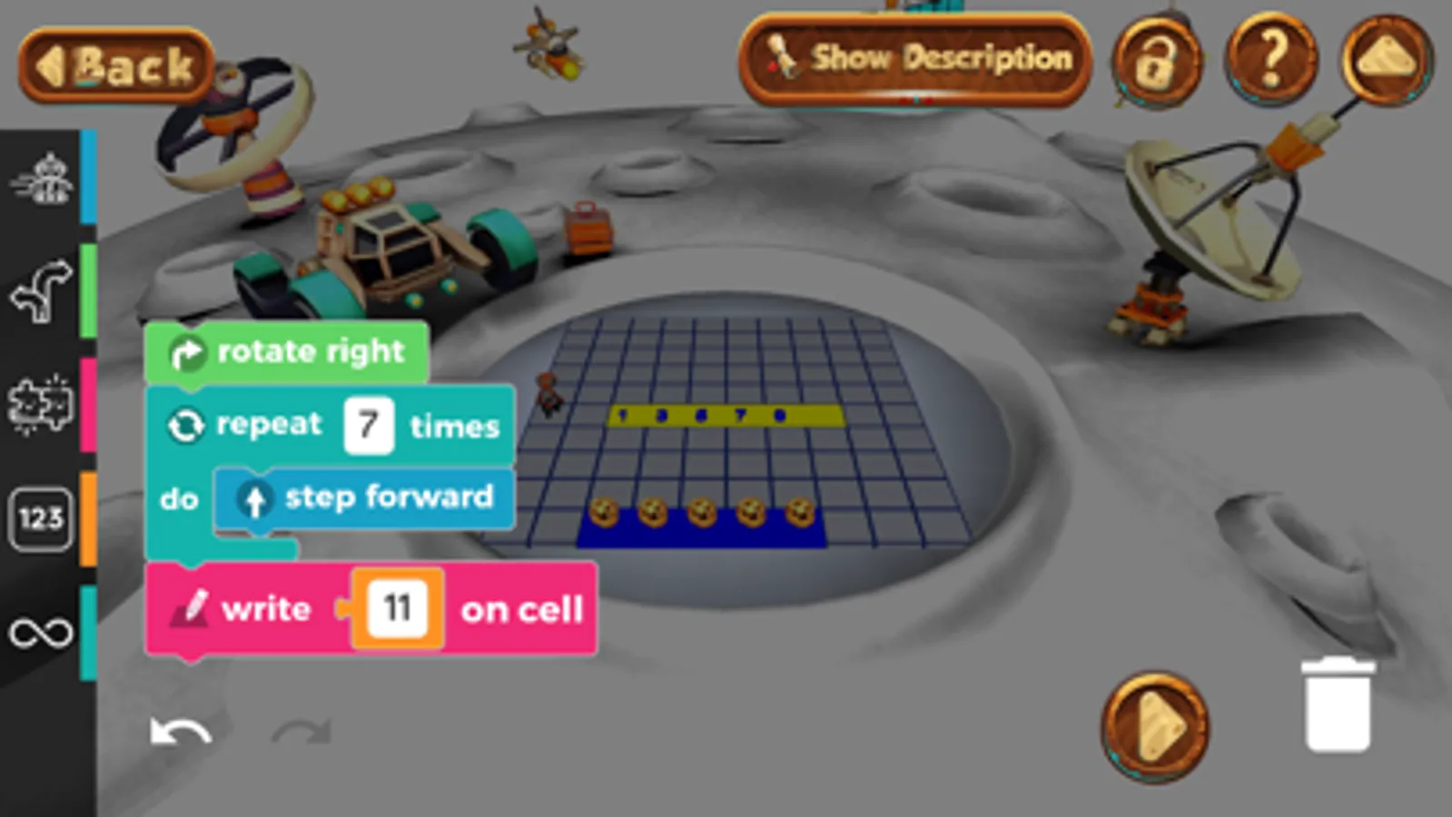 Discover Alien Message - Math will be easier while coding and using loops to minimize number of blocks.