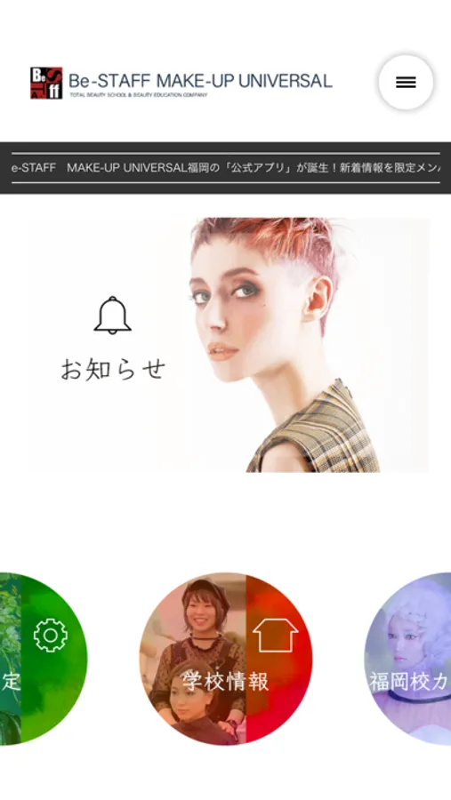 Be-STAFF MAKE-UP UNIVERSALは35年の歴史のある教育理念と独自のシステムでプロを養成する総合美容スクールです。【Be-STAFF福岡本校】の公式アプリの誕生です。