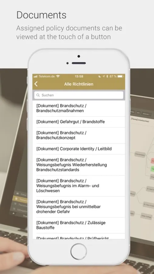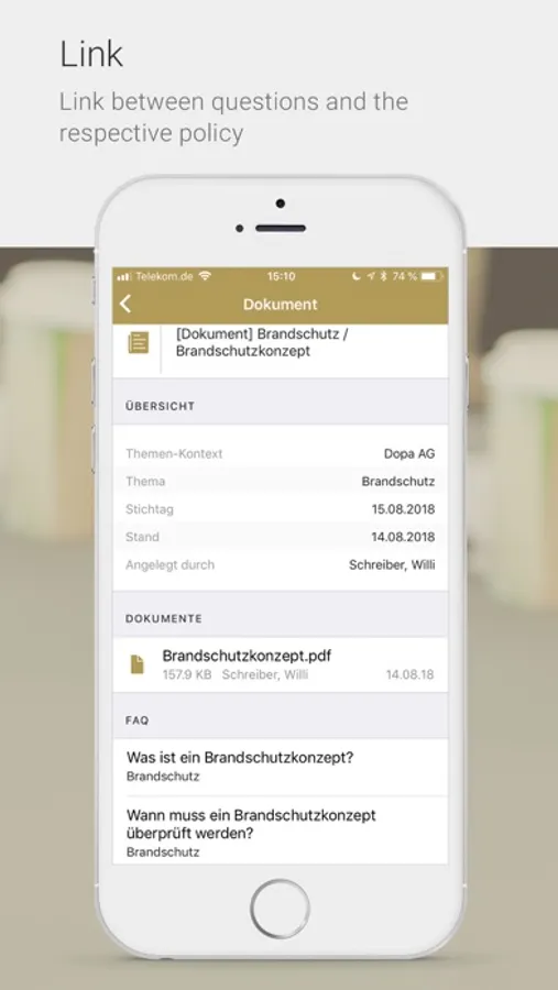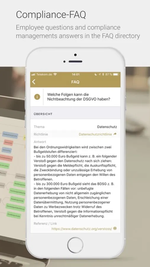 To comply with guidelines and policies employees need to have access to them. The app myCompliance simplifies the access: Employees can choose if they use their desktop-PC or a mobile device for receiving their individualized guideline information.