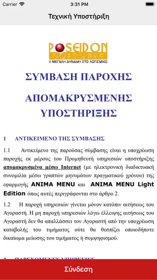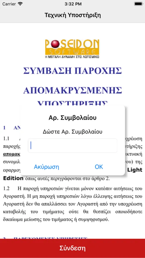 H εφαρμογή τρέχει σε συσκευές iOS για online τεχνική υποστήριξη της Poseidon Software SA