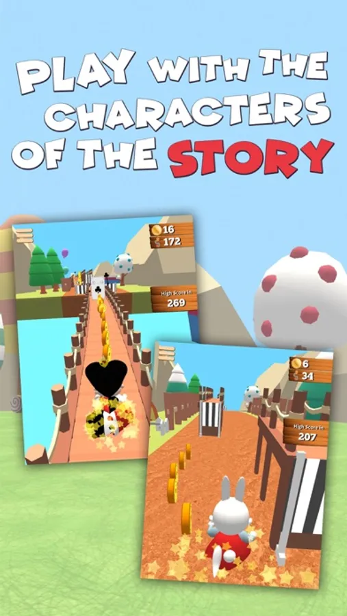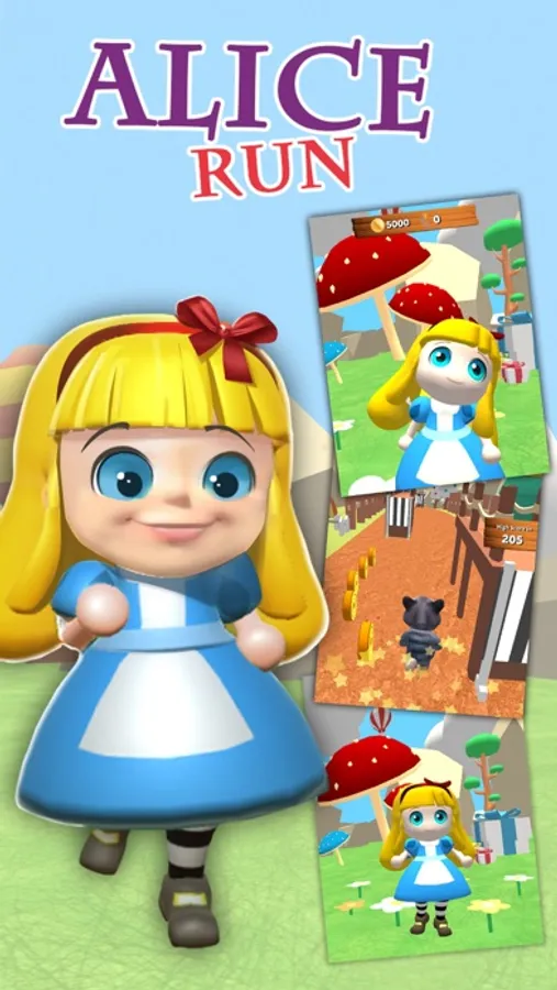 Alice Run – 3D Endless Runner is a fun action game. The side-scrolling runner runs in an infinite path of Wonderland collecting coins until an obstacle stops her with the point being to achieve the highest possible score. Swiping the screen from side to side turns corners to change directions , while swiping backward or forward causes Alice to jump or slide under obstacles. Tap on the screen to hit the card soldiers of the Red Queen. Pick up power ups, upgrade different statistics and ride in the endless forest.