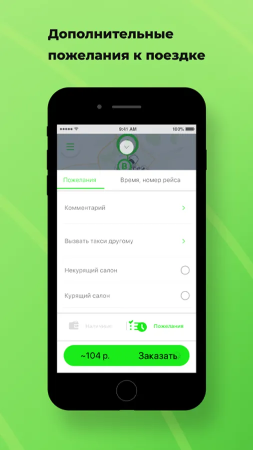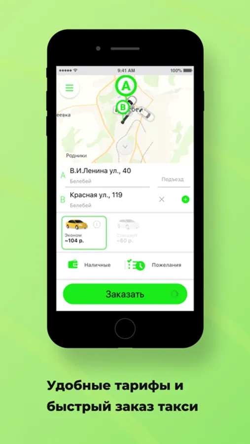 Марка, номер, цвет и время прибытия такси известны заранее. После завершения поездки Вы можете ознакомиться с длительностью, расстоянием и итоговой стоимостью.