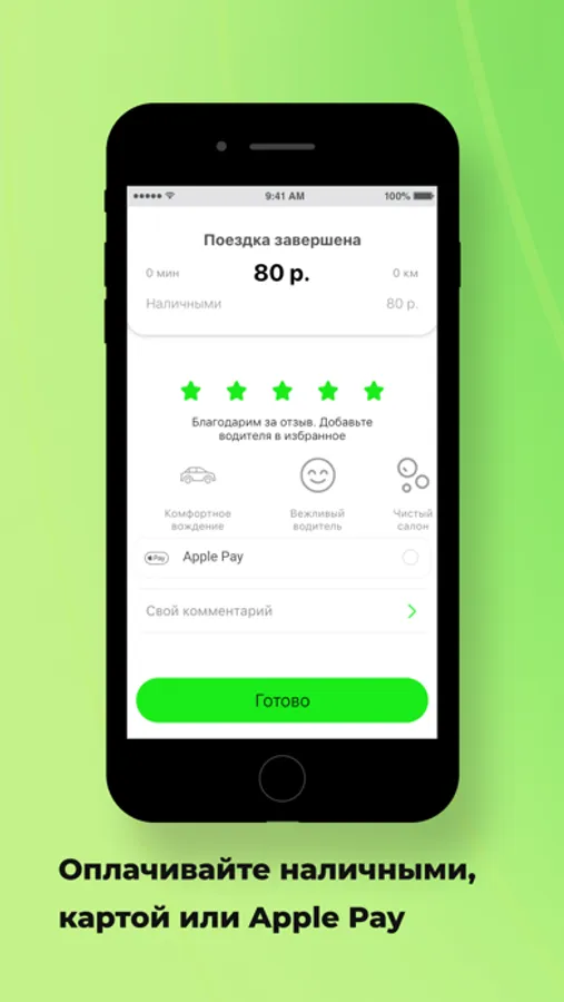 Оставляйте оценки в конце поездки и влияйте на рейтинг водителя, который отображается в приложении.
