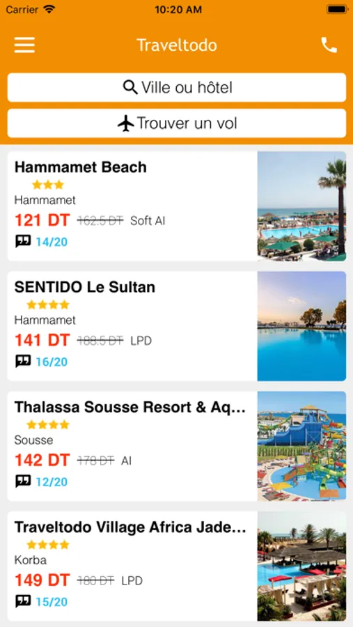 Traveltodo, première agence de voyages en ligne, en Tunisie, vous propose avec cette application de réserver vos séjours, hôtels, vacances à Tunis, Hammamet, Sousse, Tozeur, Tabarka.