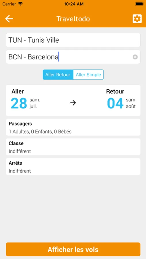Des milliers de vols réguliers disponibles sur plus de 25 compagnies aériennes connues.Traveltodo vous offre la possibilité de rechercher un vol,de réserver et de payer votre billet d'avion en toute sécurité avec 50% de remise sur les frais de réservation .