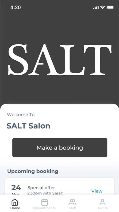 The SALT Salon app makes booking your appointments and managing your loyalty points even easier. You're just a few taps away from feeling good and looking great!