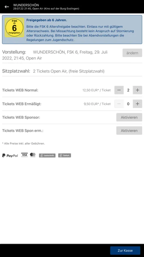 Hier kaufst Du in unter einer Minute Kinotickets für Deinen Lieblingsfilm. Schnell, sicher, einfach und ohne Anstehen an der Kinokasse. Einfach aus dem aktuellen Kinoprogramm Deinen Film buchen und Du erhältst die Tickets einfach & bequem als E-Ticket auf Dein Smartphone und an Deine E-Mail-Adresse.