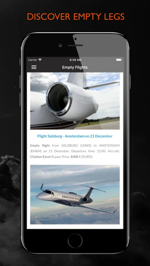 With Jet Private app you can access a fleet of over 5000 aircraft and have, at any time, quotes and availability of aircraft on all routes, to fly around the world.
