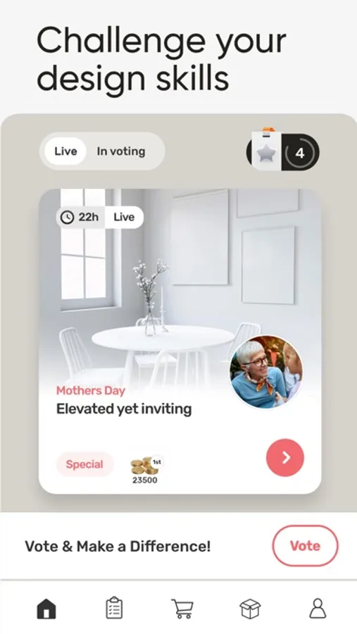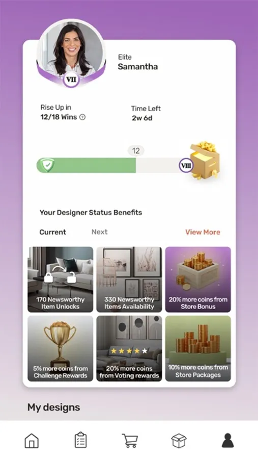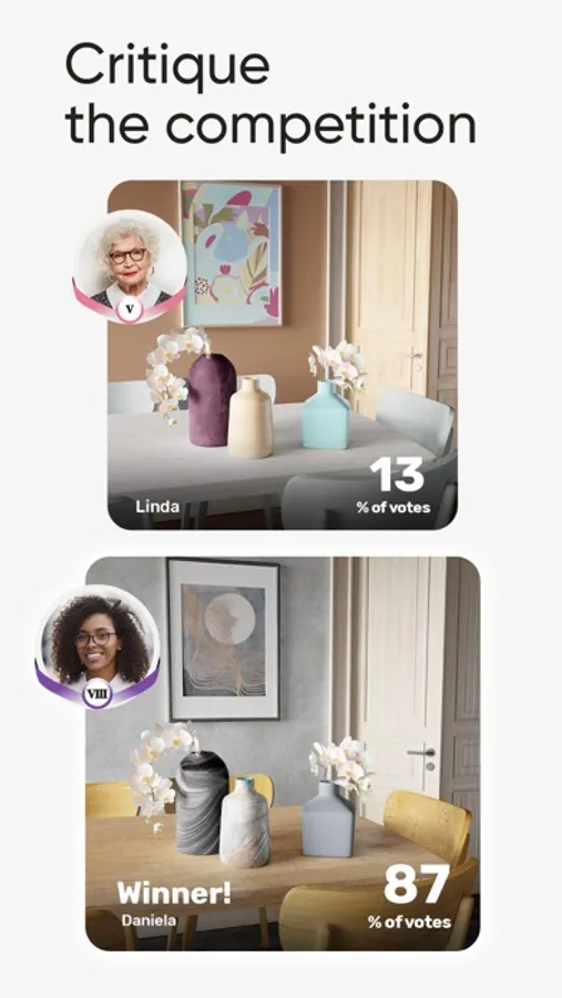 * Daily Design Challenges let you style photo-realistic spaces with various design styles