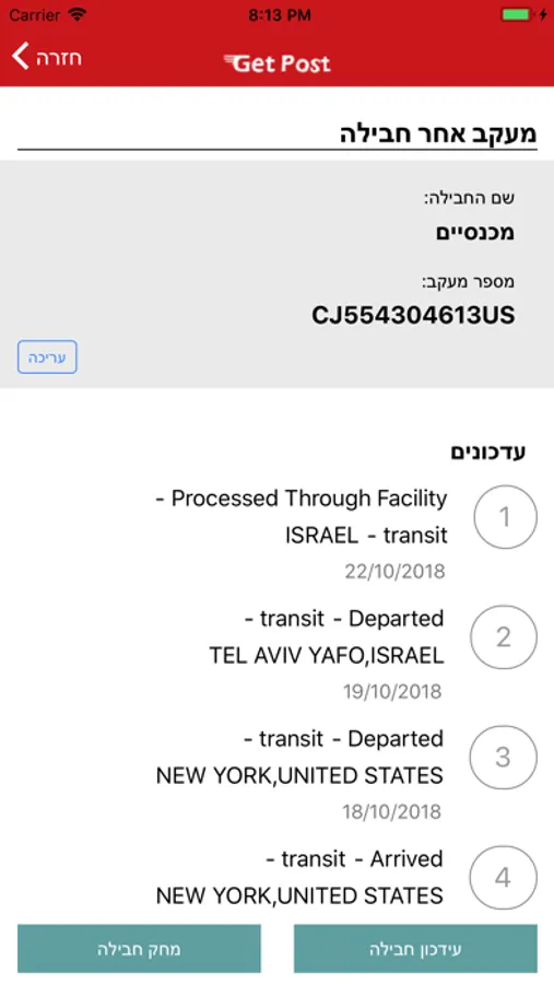 Support for over 700 international mail providers (UPS,Fedex,DHL,Israel Post and many more)