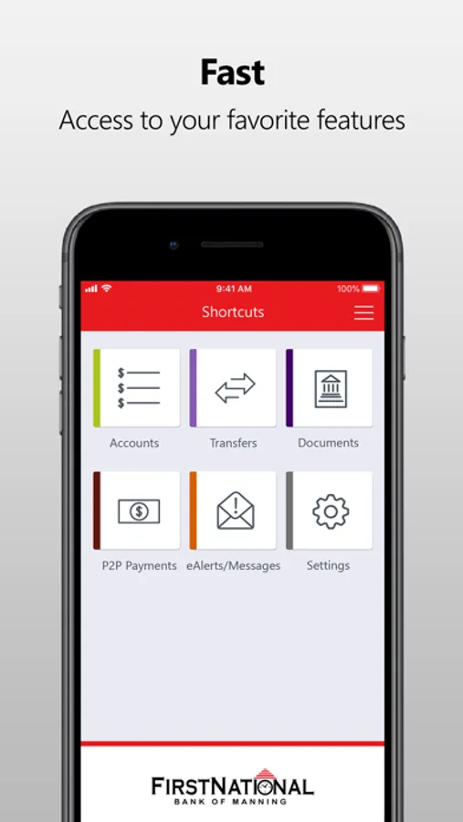 FNB of Manning allows you to view your bank accounts, schedule transfers between them, and even make deposits from anywhere!