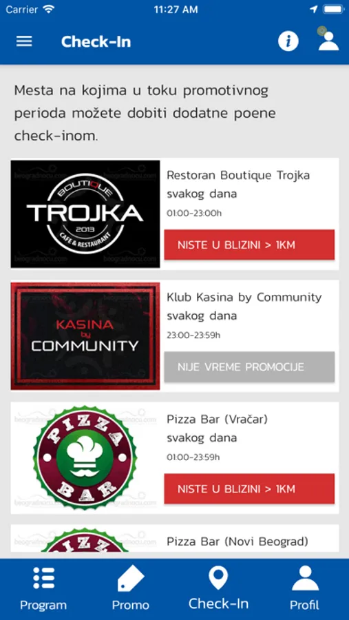 dodirom na logo lokala pojaviće se opis izabranog lokala.