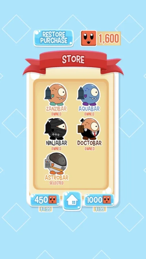 -Different characters including Ninjabar and Astrobar to upgrade playing experience