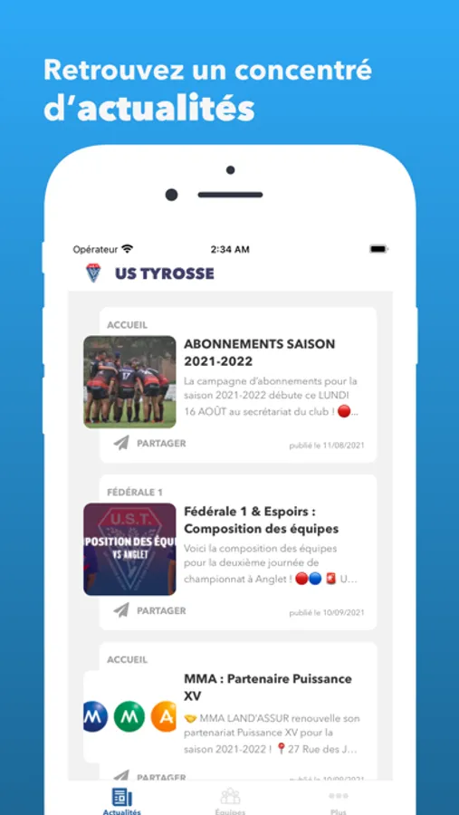Installez l'application officielle de l'US Tyrosse Rugby Côte Sud sur votre smartphone.