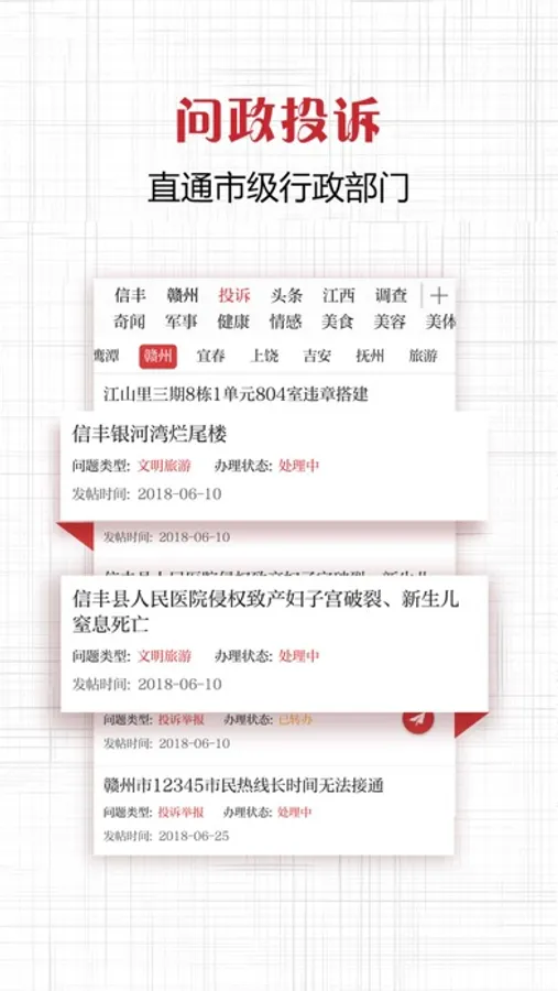信丰人自己的新闻头条,客户端给广大用户提供本地新闻资讯、民声投诉、精彩短视频、本地分类信息发布、省内重大事件直播等服务,信丰本地头条,一手掌握!