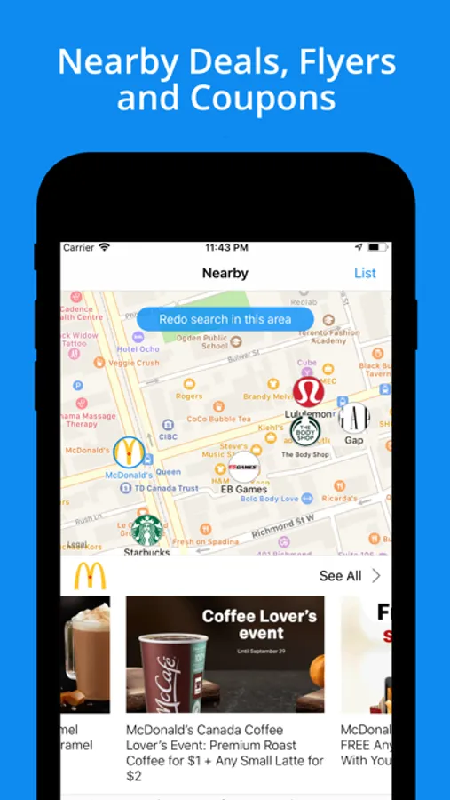 Our built in map makes it easy to spot the hottest deals that are near your location. You can save your favorite brands and deals to plan your shopping trip ahead of time. Savespree also features deals and sales from many stores including Ikea, Sephora, Macy’s and more.