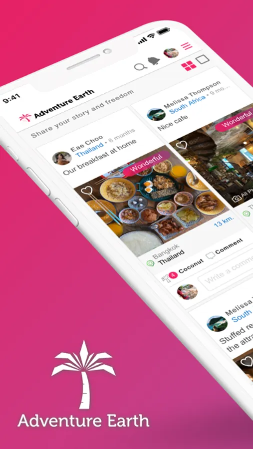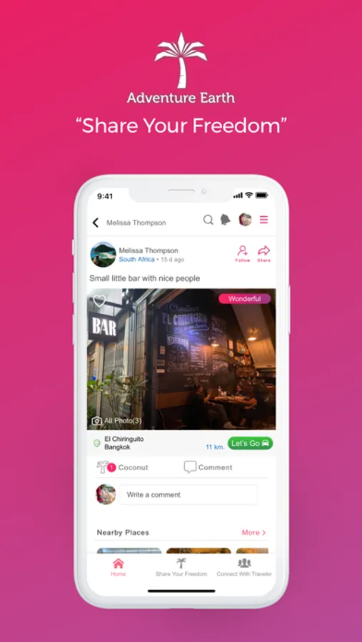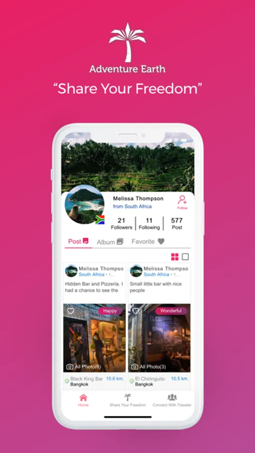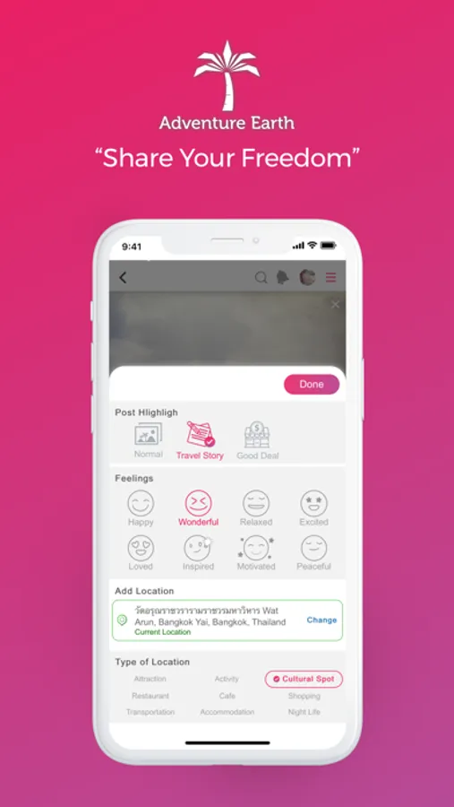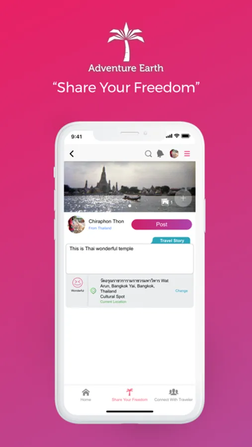 The newest, easiest, and most inspirational way to explore Thailand – though feeds -- from real travelers. “Adventure Earth” lets travelers engage into the social community of sharing freedom and positive thoughts through feeds of attractive places in Thailand. Either heritage places like peaceful temple and amazing palace, or relaxing beach and café with fresh Thai coffee, Adventure Earth makes it easy for you to be there with linkage to map and navigation. Get to know more travelers who are like you is very simple just by downloading the app, and be a part of Adventure Earth community. Join us, and let’s -- share your freedom -- to the world.