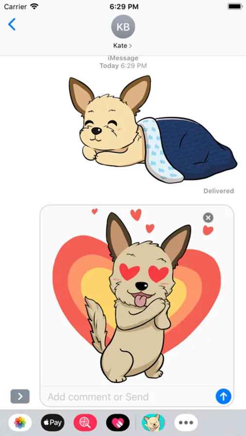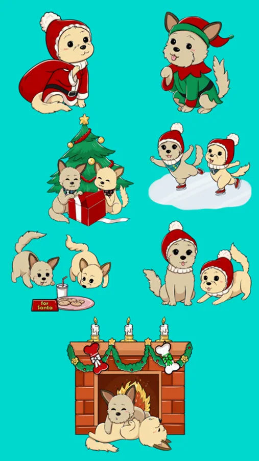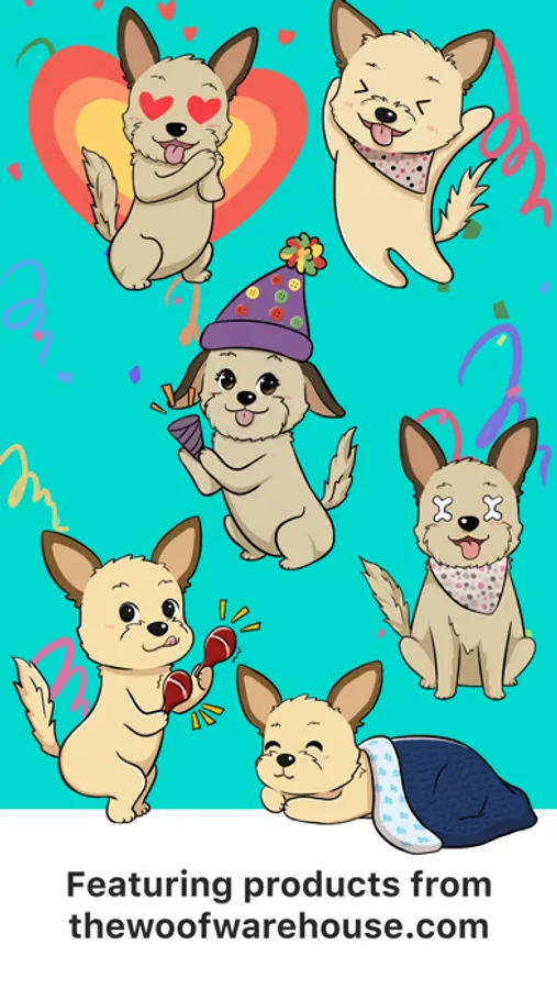 A collection of cute stickers from The Woof Warehouse, featuring Watson & Sherlock wearing some nifty accessories, napping in our burrow beds and getting cozy under our convertible blanket pillows.
