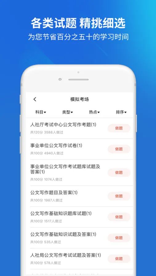 事业单位题库包含了公共基础知识、行测、综合知识等课程的历年真题及模拟试题题型,题库中的试题全真模拟真实的考试,是各位考生学习乃至通过考试的好帮手。