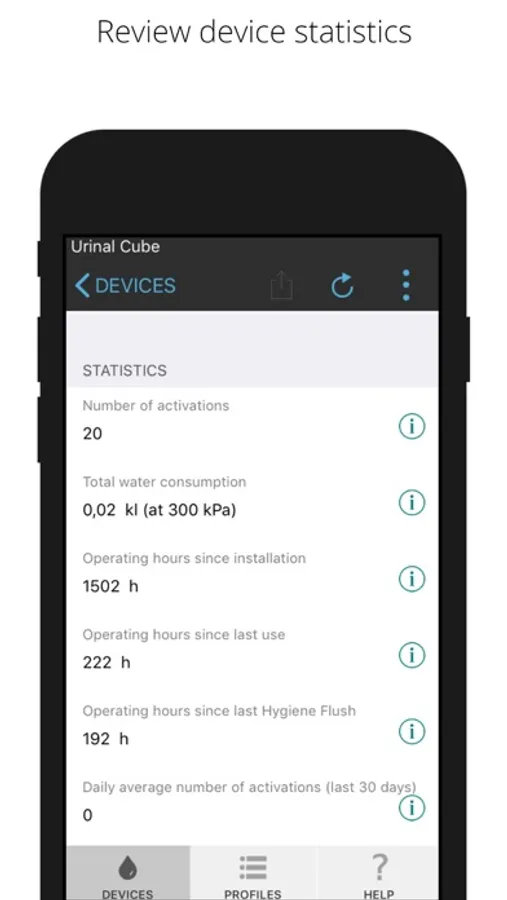 Usage Statistics: Check the usage statistics of each individual fixture, the entire bathroom or the entire building. Usage statistics include the number of activations per fixture over a daily/weekly/monthly/annually time frame.
