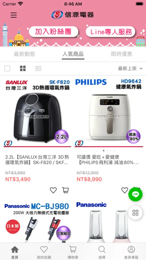 我們擁有最新、最多、最優惠的空調冷氣、電視、冰箱、洗衣機、生活家電、廚房家電、淨水設備、通訊設備、美髮美體設備、醫療設備,還有最多款式的周邊配件、零件……等近萬種品項。