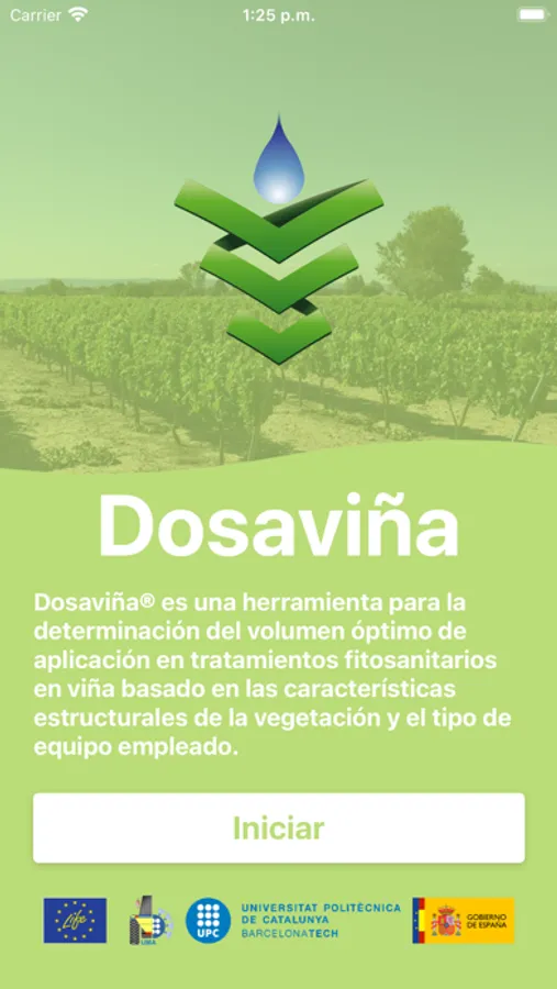 DOSAVIÑA® is a free app developed by the Unit of Agricultural machinery from Polytechnic University of Catalonia (https://uma.deab.upc.edu/en ), to improve the sprayer efficiency and effectiveness during pesticide application in trellis vineyards. The app is based on the Crop-Adapted Spraying model, which has been tested in extensive field trials.