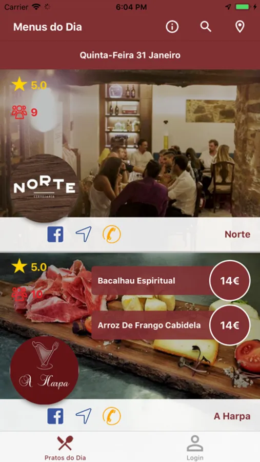 - Visualizar os pratos e menu do dia dos restaurantes favoritos;
