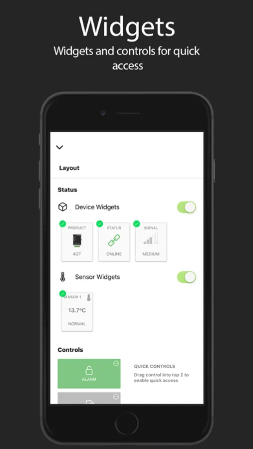 - Check device status and pin them to your site, along with most used controls