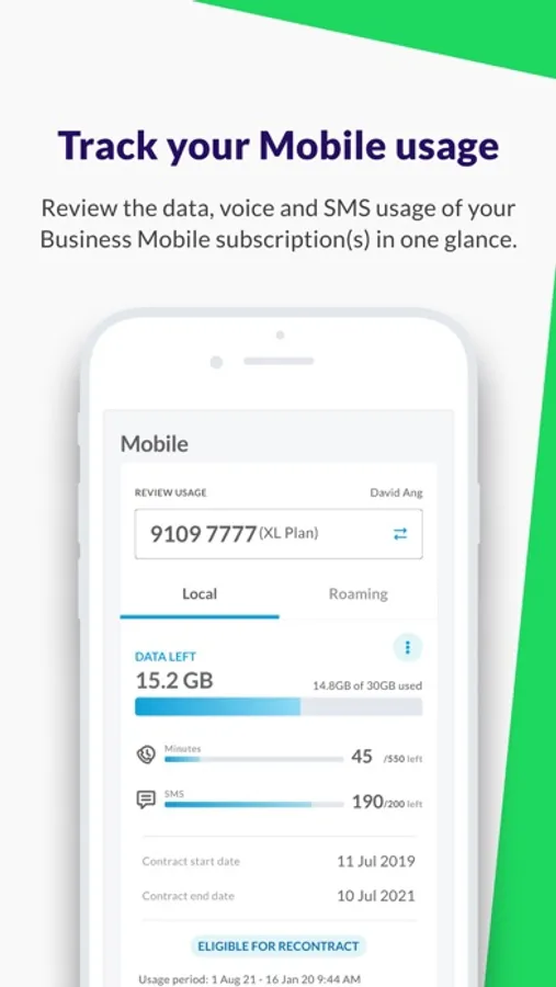 • A refreshed usage dashboard so you can track your local and roaming data usage seamlessly. No more excess charges.