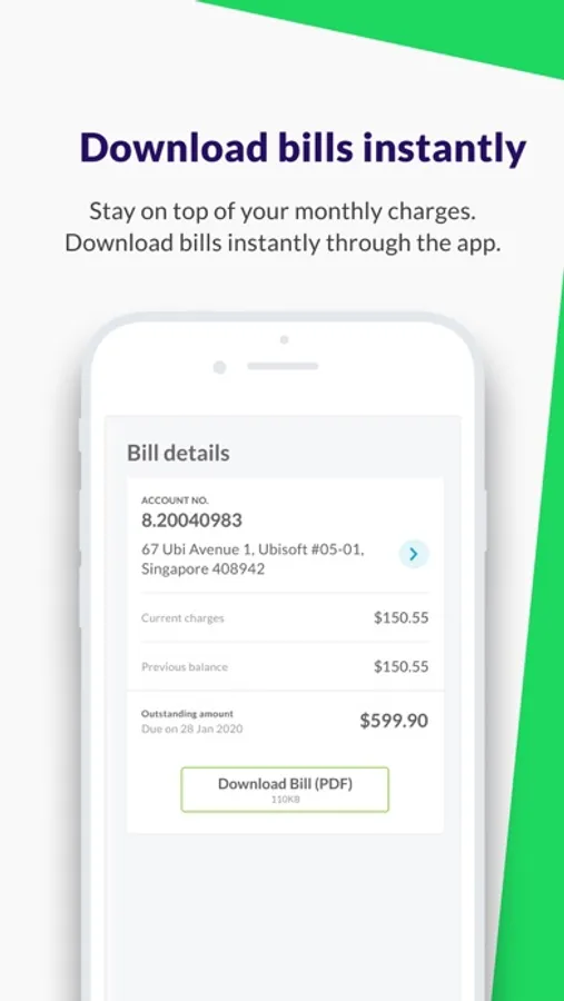 • A single tab to view your monthly outstanding billing amount. No more bill shocks.
