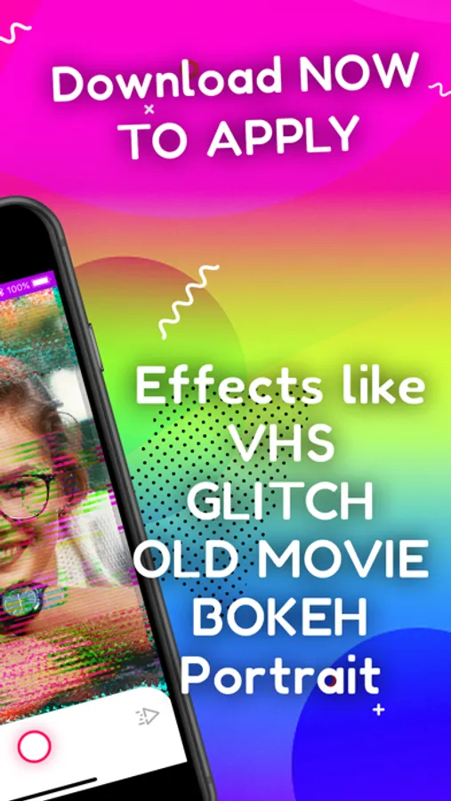 Video Effects Camera Recorder. Portrait Mode on any iPhone. Plenty of filters (cinema, vintage, B&W), effects (Portrait Mode, VHS, Glitch, Old Movies), Overlays, Text, Particles (rain, fire, lights), import LUTs, merge Videos with Music and much more for your Vertical Videos.