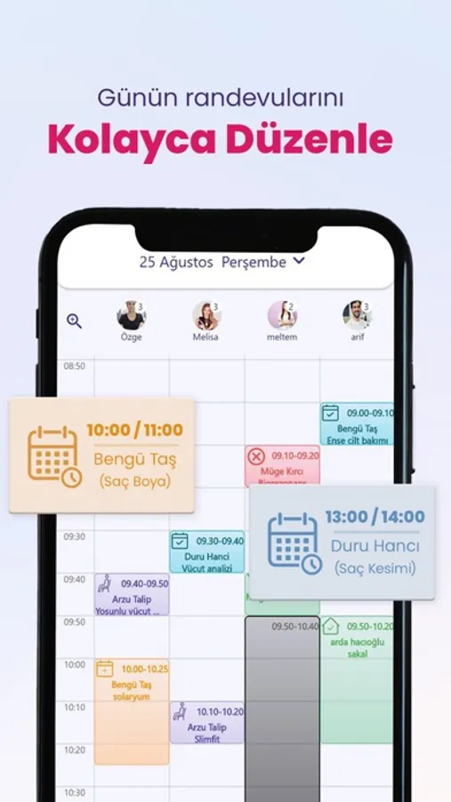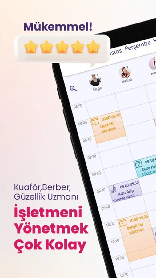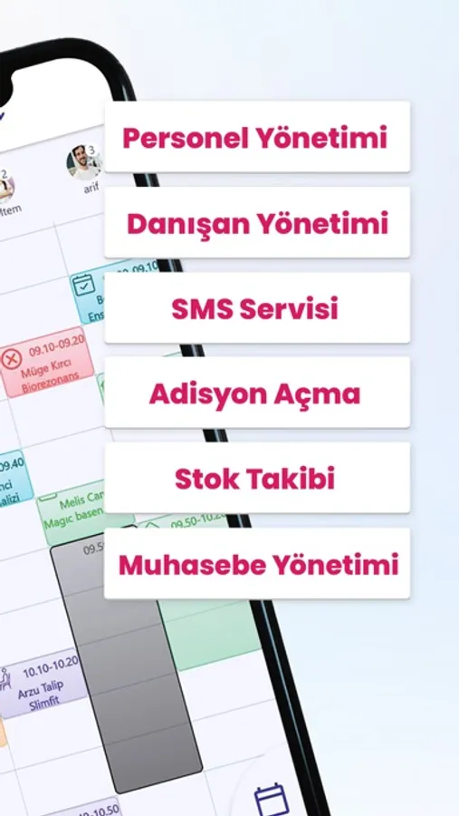 Müşterileriniz online randevu alsın, Randevu hatırlatma SMS mesajları, Adisyon takibi, Çalışan prim takibi, Gelir – Gider takibi ve raporlama, Stok takibi. Para-Puan sistemi, Müşteri yorumları ve çok daha fazlası... hepsi bir arada 360° işletme yönetimi 7/24 cebinizde.