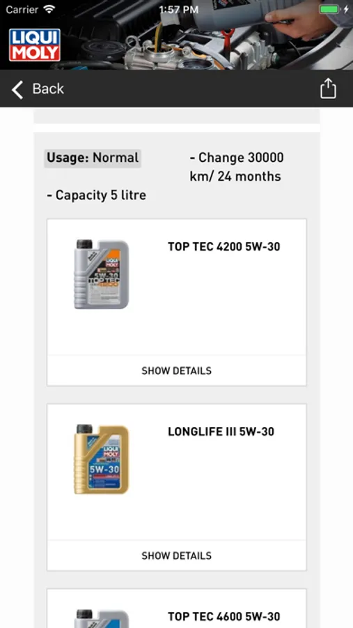 • Search for the right motor oil, gearbox oil, hydraulic oil, coolant and brake fluid for your vehicle