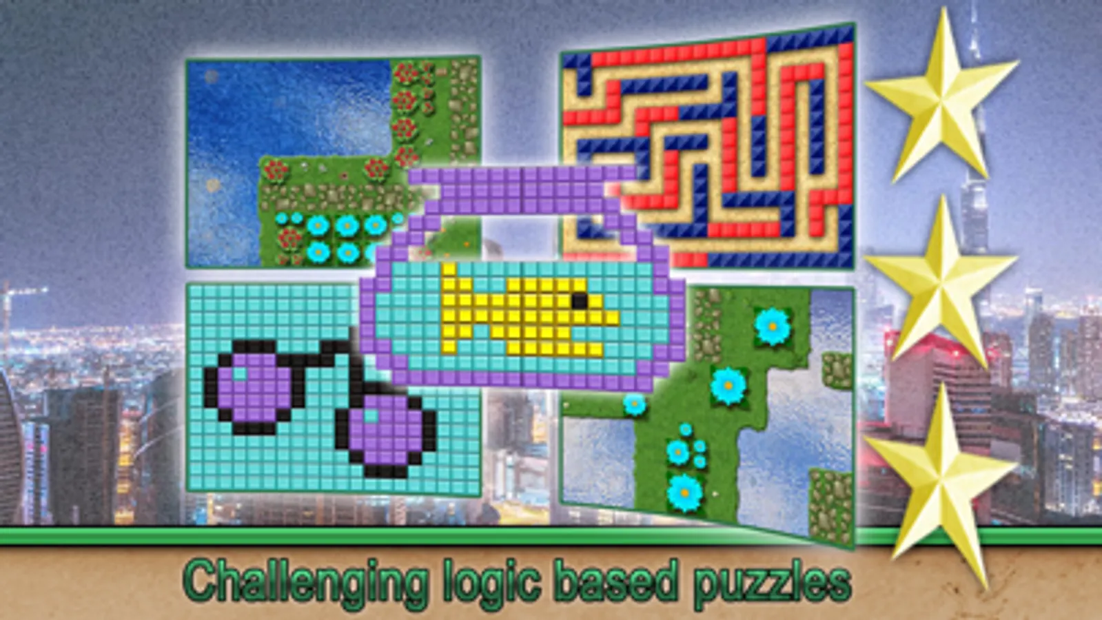 Visit some of the world's greatest cities as you play mosaic puzzles! Start your adventure off in Bangkok, Thailand and make your way through other great cities like New York, Lisbon, Dubai, Cape Town, Buenos Aires, and Berlin. You'll play mosaic puzzles in a variety of styles while you learn interesting facts about the cities you visit.