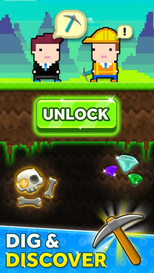 • Start with a pickaxe and turn an old farm into a lucrative crypto mining company!
