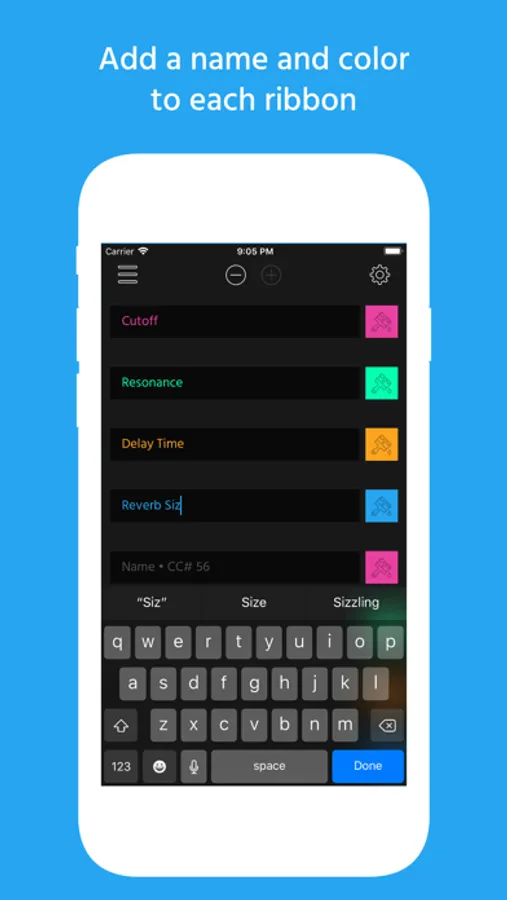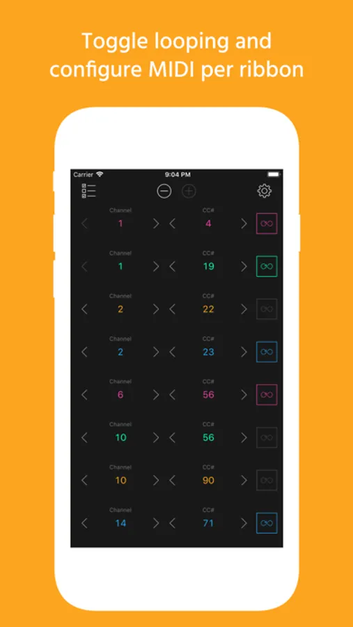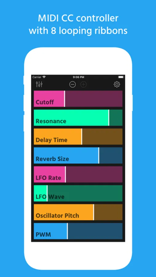 • Slide your finger on a ribbon to send CC values and control the parameters on your MIDI gear.
