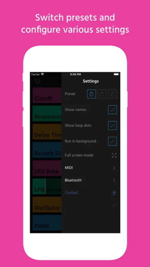 • Control hardware MIDI synths parameters like the filter cutoff frequency, resonance, oscillator octave, etc.