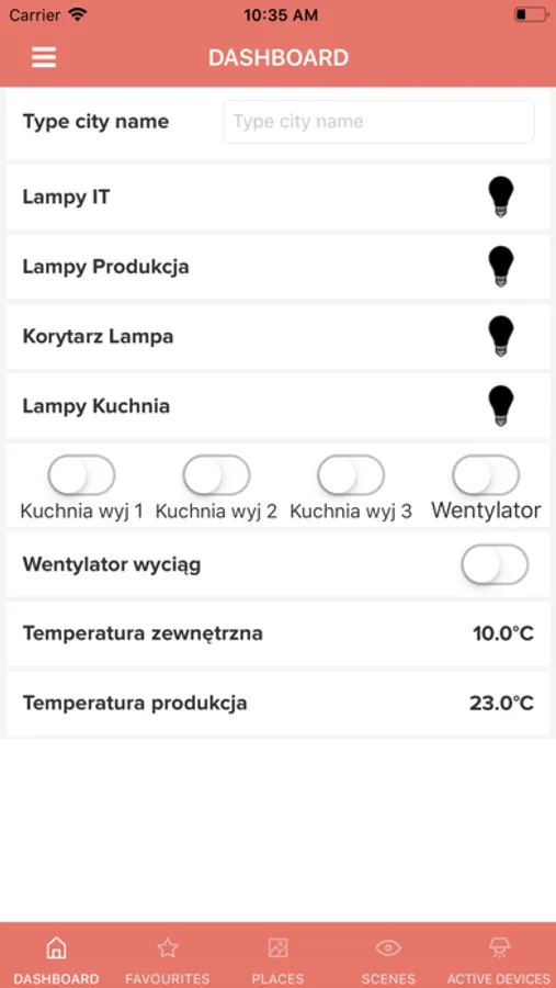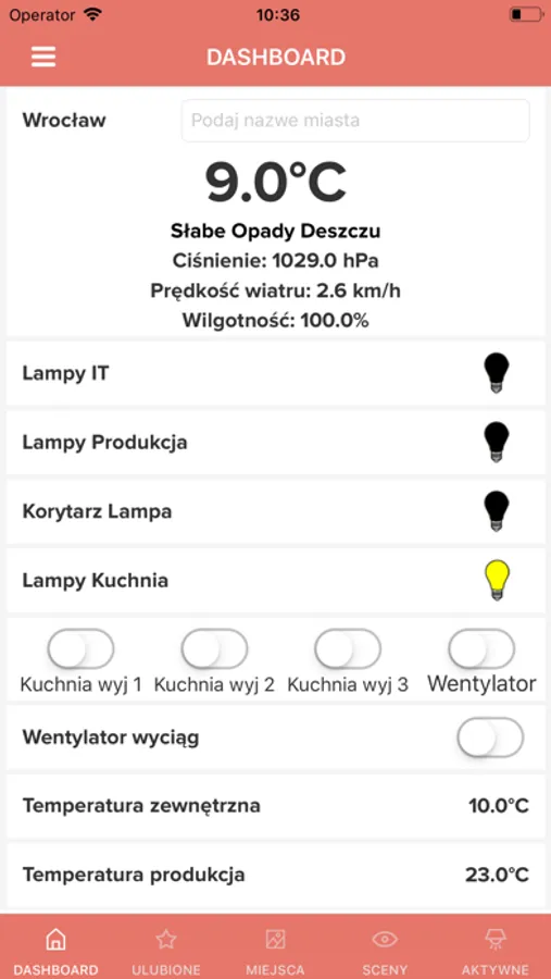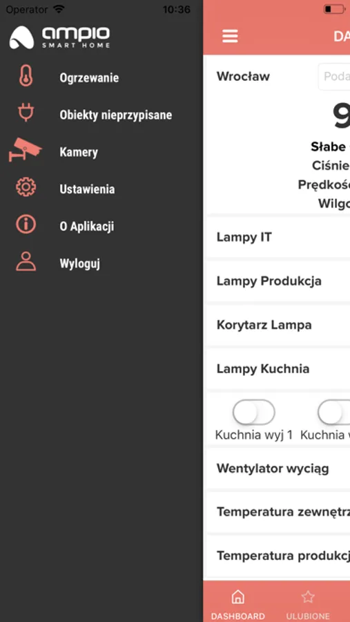 Native application of smart house Ampio system allows you to control every part of your house. You can control light, temperature, fans, motors and many other things from every place in the world. You can check if you turn off all lights and devices after you left home. Create your own scenes like „Movie” , „Guests” or „Party” where you set all light to your favorite color and set temperature to 20 degrees.