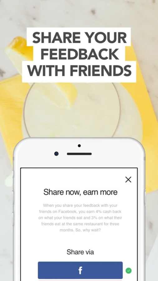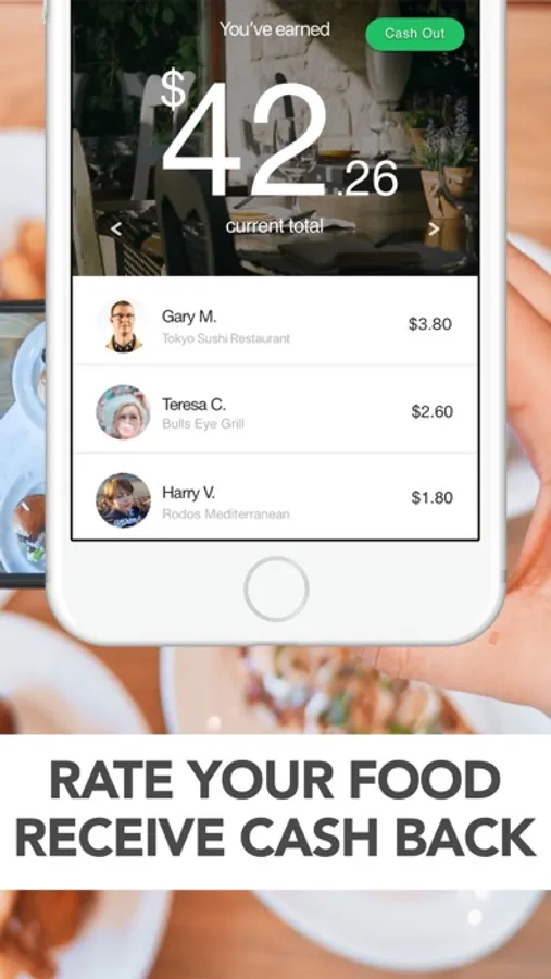 Rate your food, receive cash back. Every time you rate a participating restaurant’s food on Roqa, you earn money. When you share your experience with your friends, you get additional cash back if they eat at the same restaurant through your referral.