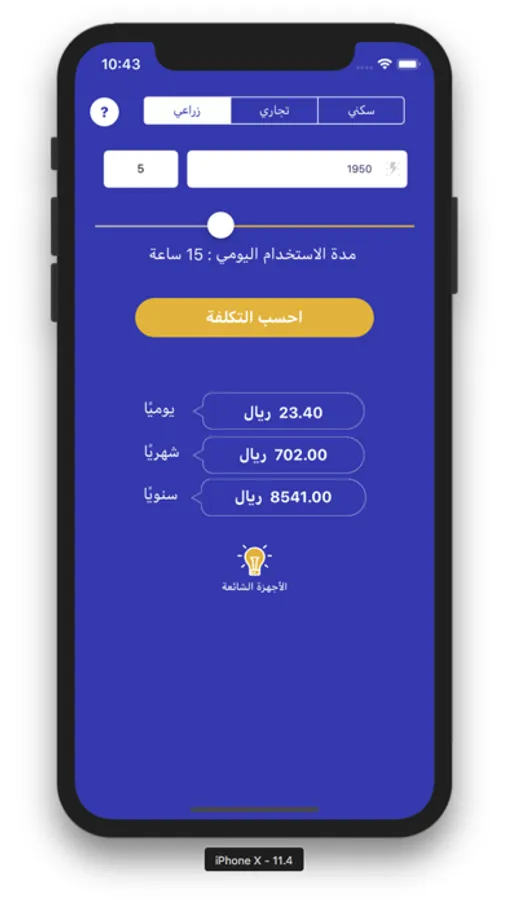 للاستفادة من التطبيق كل ما عليك معرفته هو كمية الطاقة التي يستهلكها الجهاز ( توجد في العادة خلف الجهاز ) وتحديد عدد الأجهزة ومدة الاستخدام اليومي .