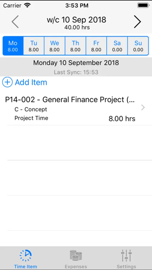 The app retrieves users' current timesheet data and active projects from the main PIM system in order to provide support for offline working. Users can then complete existing un-submitted timesheets and create new time and expenses entries on their iPhone and iPad. The new entries are then synchronised back to the main system either automatically or via manual synchronisation.