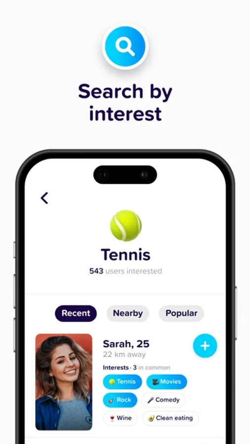 • Search by Interest - Looking for a new tennis partner? Or maybe just someone to grab a coffee with? Search by interests to find people that like the same things you do.