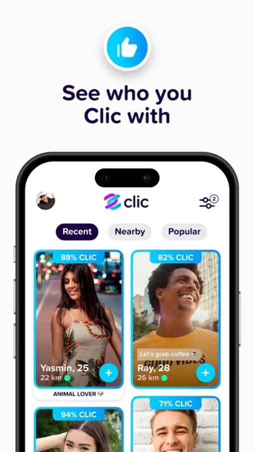 Looking to meet people that have the same interests you do? Clic allows you to meet new people based on what you have in common. Download the app now and find your next best friend, travel partner, workout buddy, or maybe just someone new to meet for coffee and see if you Clic!