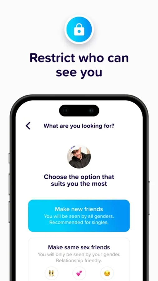 • No Creeps Allowed - Restrict who can see you in the app by choosing to meet only same sex friends or meet everyone. If anyone makes you uncomfortable on Clic, simply block and report them so we can disable their account and keep Clic a safe place for everyone.