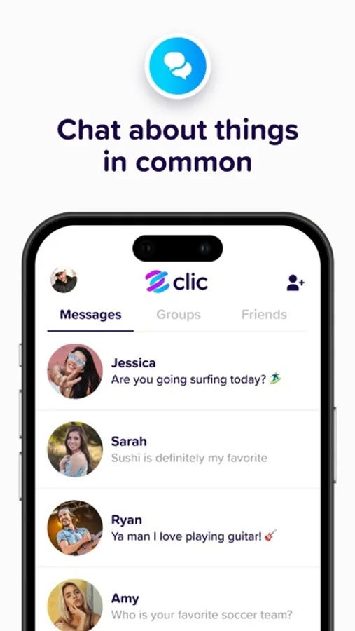 • No More Dry Chats - Tired of the same boring conversations? With Clic you can always chat about several interests you have in common with your new friends.