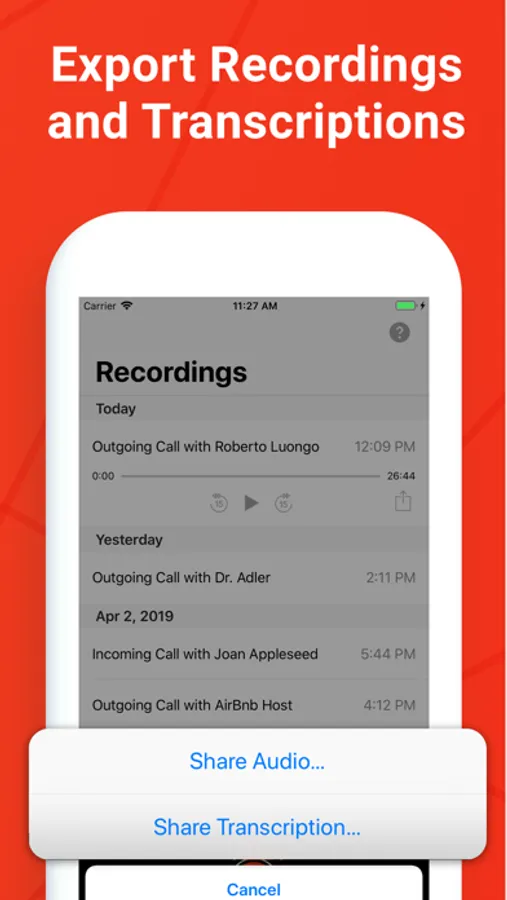 √ Upload your recordings and transcriptions to Dropbox, iCloud, Google Drive and others!